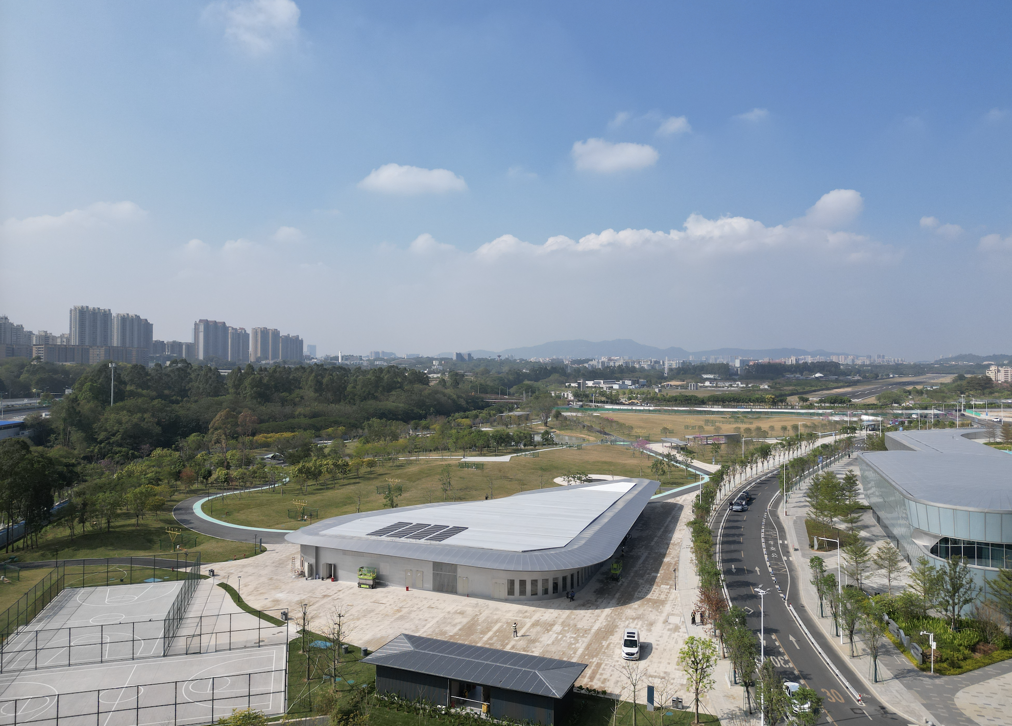 “低碳之路”环跑径串联起“飞翔草坪”“梦想乐园”“全龄球场”等康体设施,持续激发社区健康活力;湖滨的“飘叶水榭”,林中的“风雨连廊”,涌边的“人才驿站”提供观景、休憩与社交的静谧场所,“动”与“静”皆宜,成为感受科技与自然的巧妙融合,驱动区域创新的“绿色芯片”。